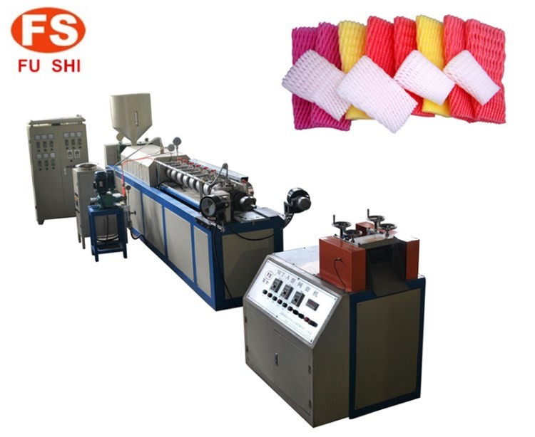 sales@fushijixie.cnThis EPE foam fruit net extrusion machine can produce EPE foam net, which is a new soft packing material. Due to its unique expanding reticulation structure and the elastic foamed net film, it is widely used in the package of glass product, precision instrument, various fruits, etc.